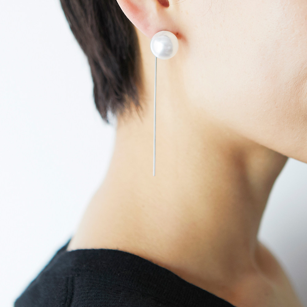 存在感のあるピアスと繊細なラインパーツの組み合わせピアスです。パールの輝きが上品さをプラスします。普段使い、パーティーなど華やかなシーンにも大活躍です!