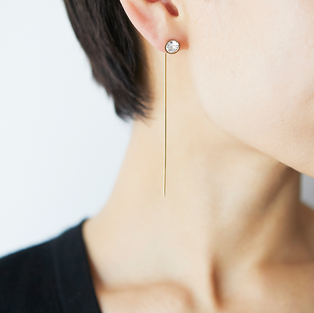 存在感のあるジュエルと繊細なラインパーツの組み合わせピアスです。普段使い、パーティーなど華やかなシーンにも大活躍です!