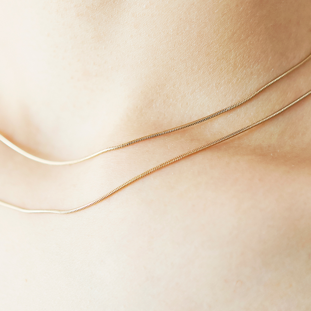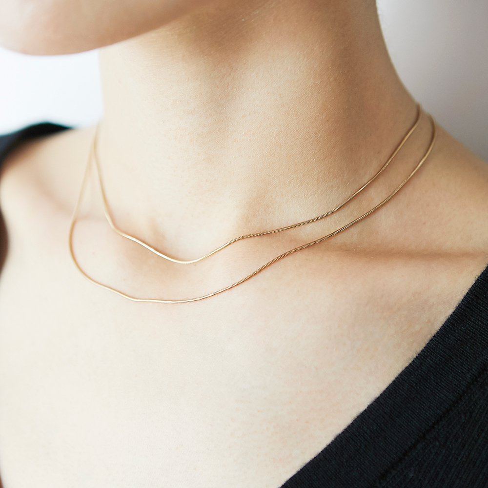 2重スネークチェーンの洗練されたデザインのネックレスです。アジャスターのチャームがアクセント!普段使いに大活躍です!