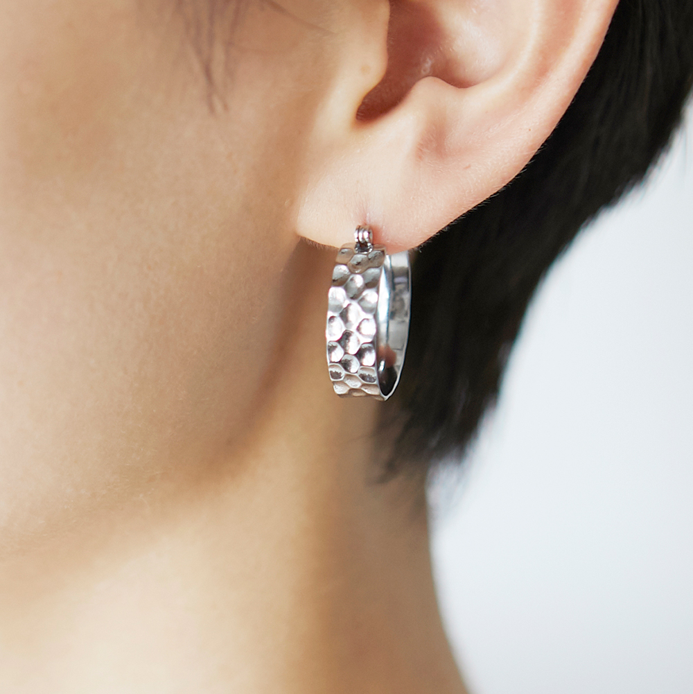 美しいテクスチャーにおおわれた存在感のあるフープピアスです。うつくしく表現したテクスチャーが生み出す造形で大人の雰囲気を演出してくれます。